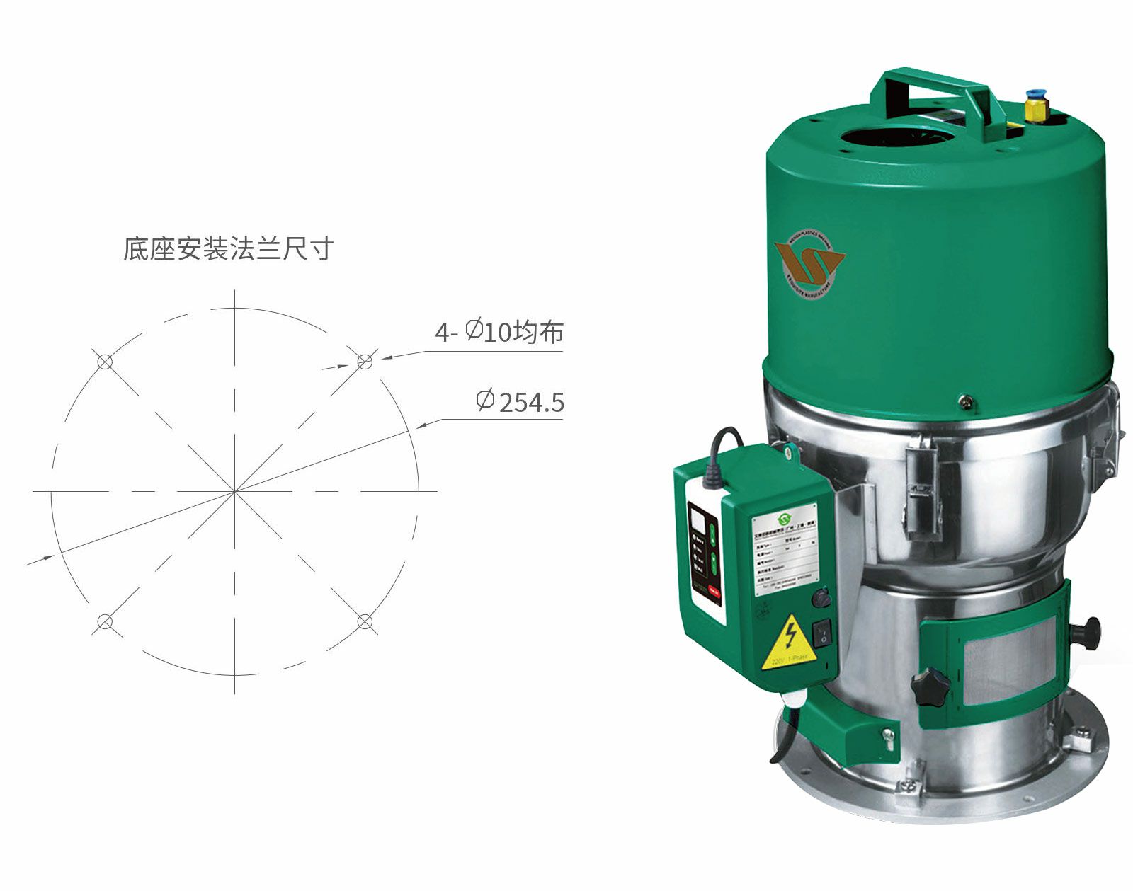 料斗和底座可任意方向调节。