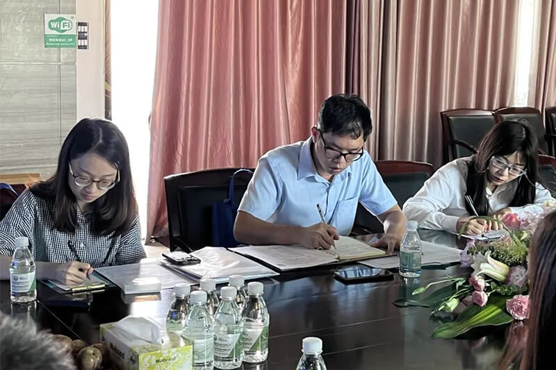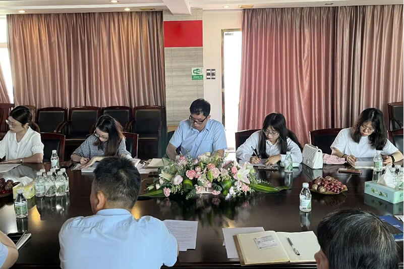 参观完生产车间,调研组来到会议室与公司陪同领导进行了深入交流与沟通。首先李总向调研组介绍了MYBALL迈博集团的发展现况,接着了解了企业主导产品、规模产值、经济效益和发展规划等情况,询问存在的困难问题和需求建议以及存在的困难和问题,同时调研组还宣讲了国家相关政策和发展导向。